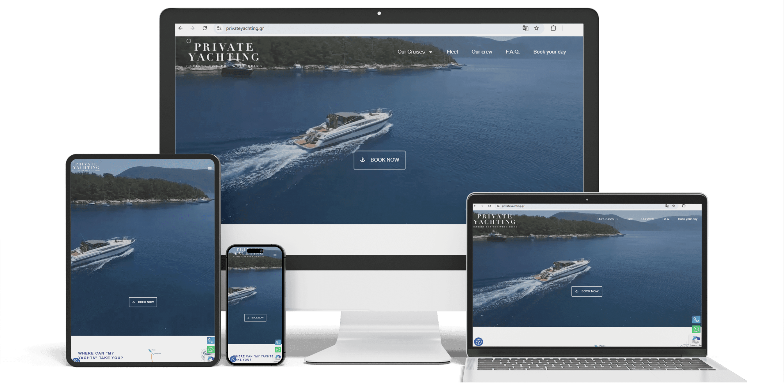Το privateyachting.gr είναι η επίσημη ιστοσελίδα της εταιρείας Private Yachting Kefalonia, η οποία προσφέρει μονοήμερες ιδιωτικές κρουαζιέρες με πολυτελή σκάφη στα καταγάλανα νερά της Κεφαλονιάς και των γύρω νησιών. Η κατασκευή της ιστοσελίδας πραγματοποιήθηκε σε WordPress με ενσωμάτωση συστήματος online κρατήσεων, που επιτρέπει την απευθείας δέσμευση ημερομηνιών και υπηρεσιών από τον επισκέπτη, διατηρώντας ταυτόχρονα τη φινέτσα ενός premium τουριστικού brand.